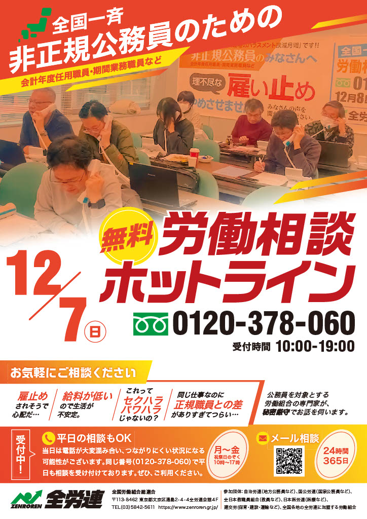 非正規公務員のための無料労働相談ホットライン | カテゴリー(キャンペーン) | 全国労働組合総連合(全労連)